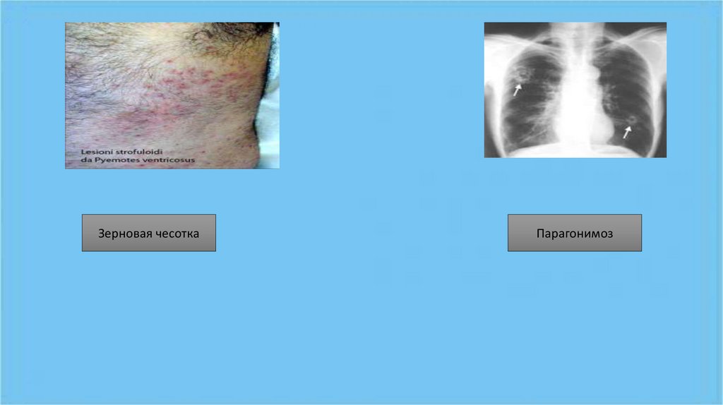 парагонимоз, стронгилоидоз, томинксоз, эхинококкоз.