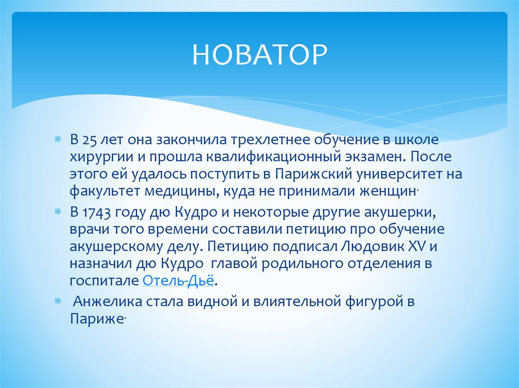 История медицины. Анжелика дю Кудро