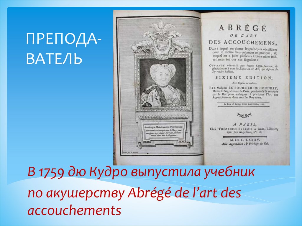 ПРЕПОДАВАТЕЛЬВ 1759 дю Кудро выпустила учебник