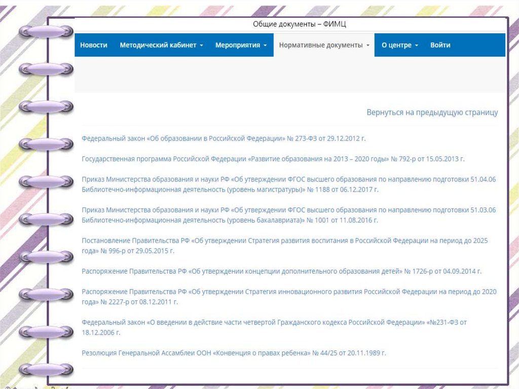 ФИМЦ. Функции Федерального информационно - методического