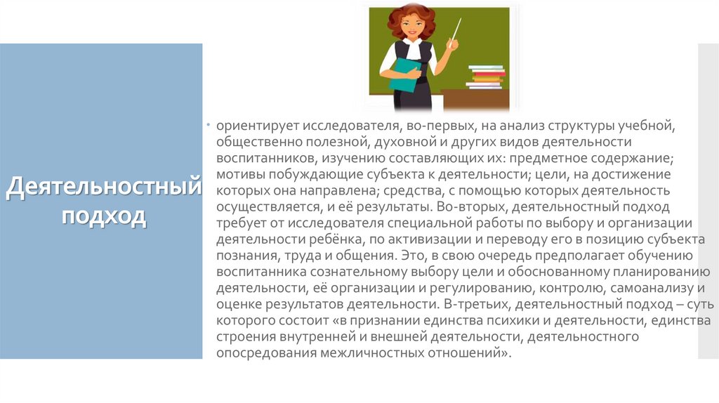 осуществляется, и её результаты. Во-вторых, деятельностный подход