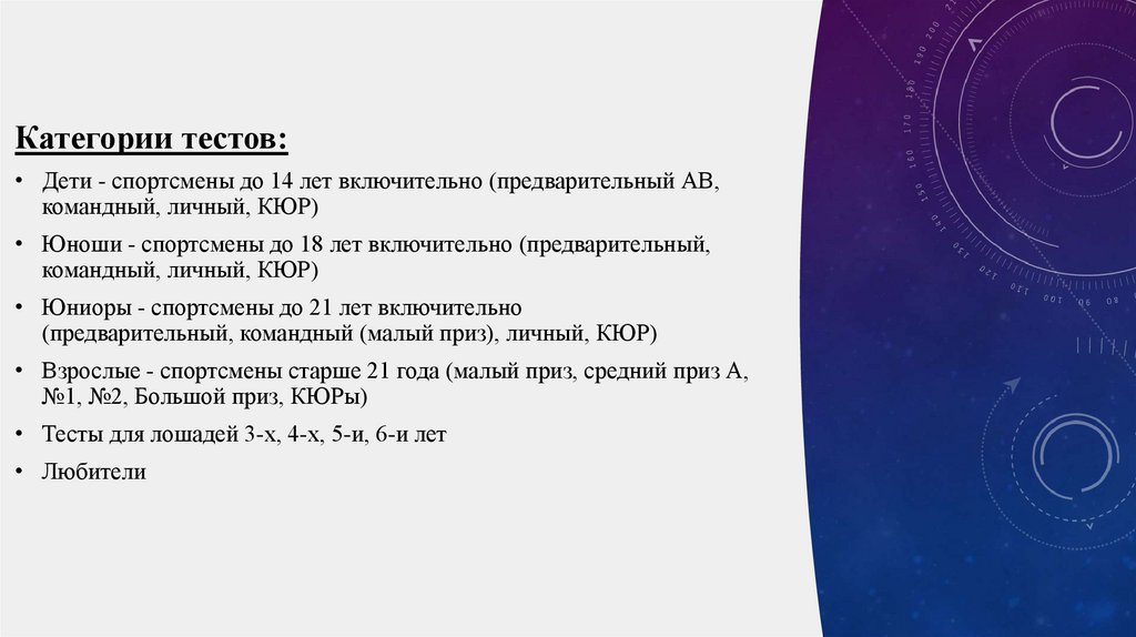 • Тесты для лошадей 3-х, 4-х, 5-и, 6-и лет