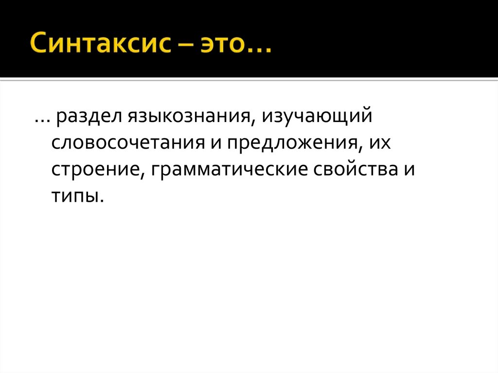 … раздел языкознания, изучающийсловосочетания и предложения, их