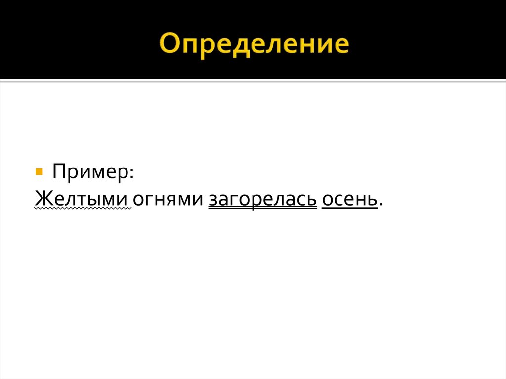 Пример:Желтыми огнями загорелась осень.