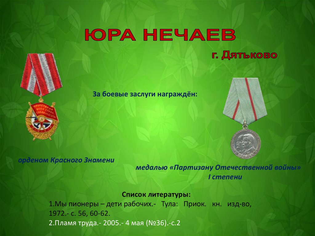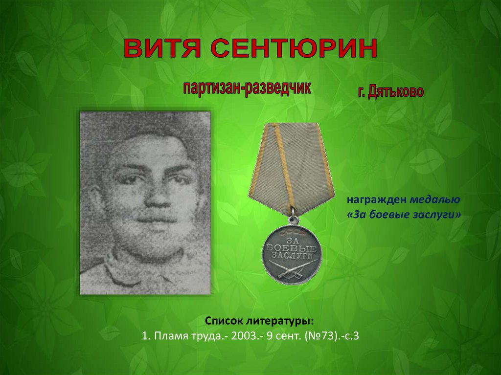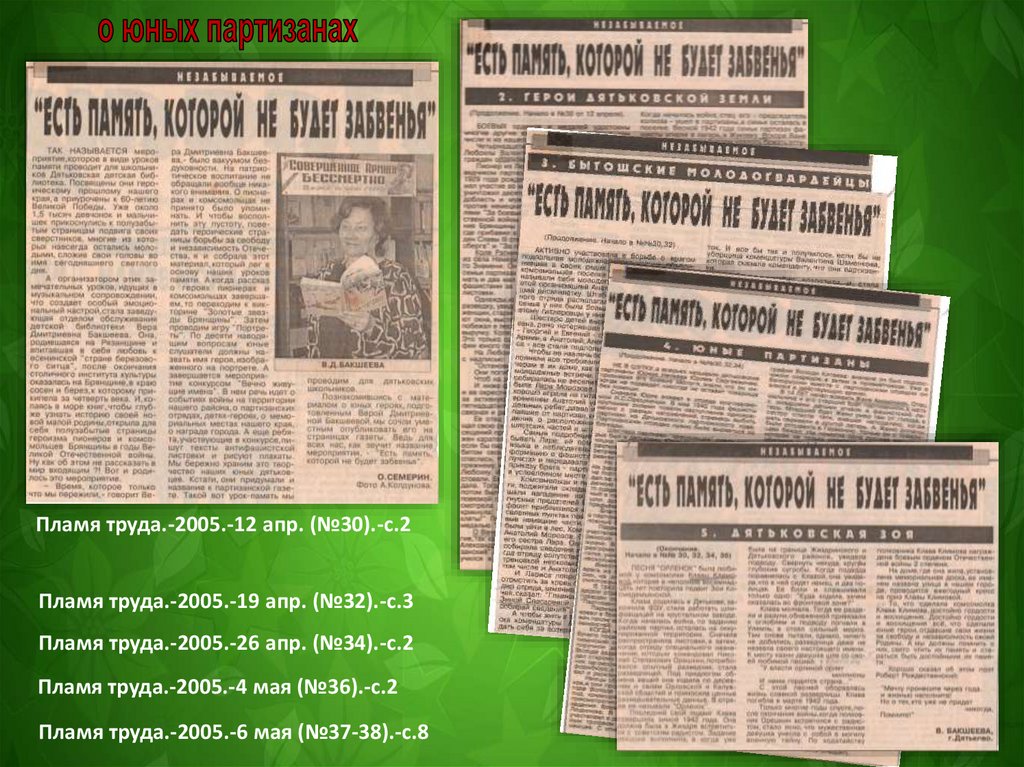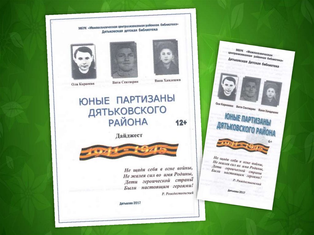 Юные партизаны Дятьковского района. Дятьковская детская библиотека