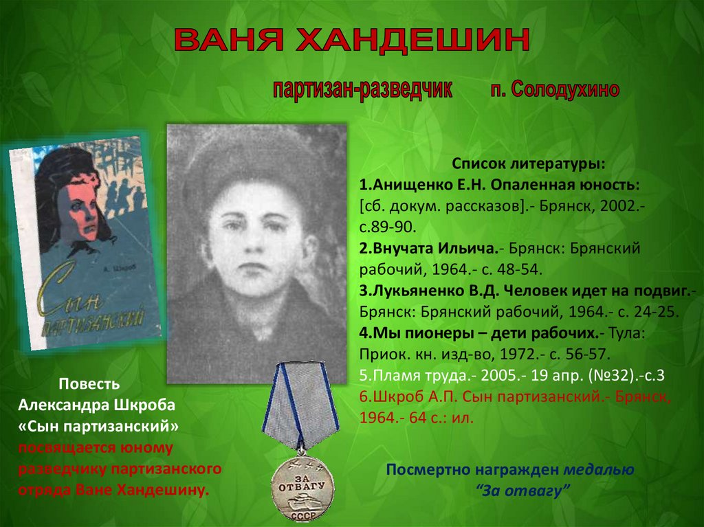6.Шкроб А.П. Сын партизанский.- Брянск,