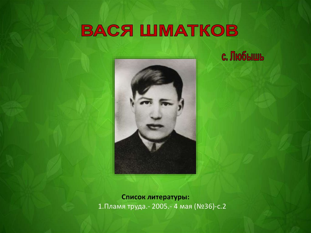 Список литературы:1.Пламя труда.- 2005.- 4 мая (№36)-с.2