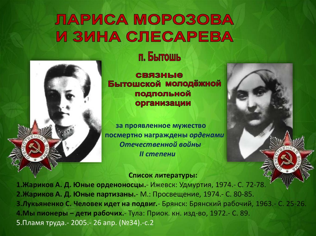 2.Жариков А. Д. Юные партизаны.- М.: Просвещение, 1974.- С. 80-85.