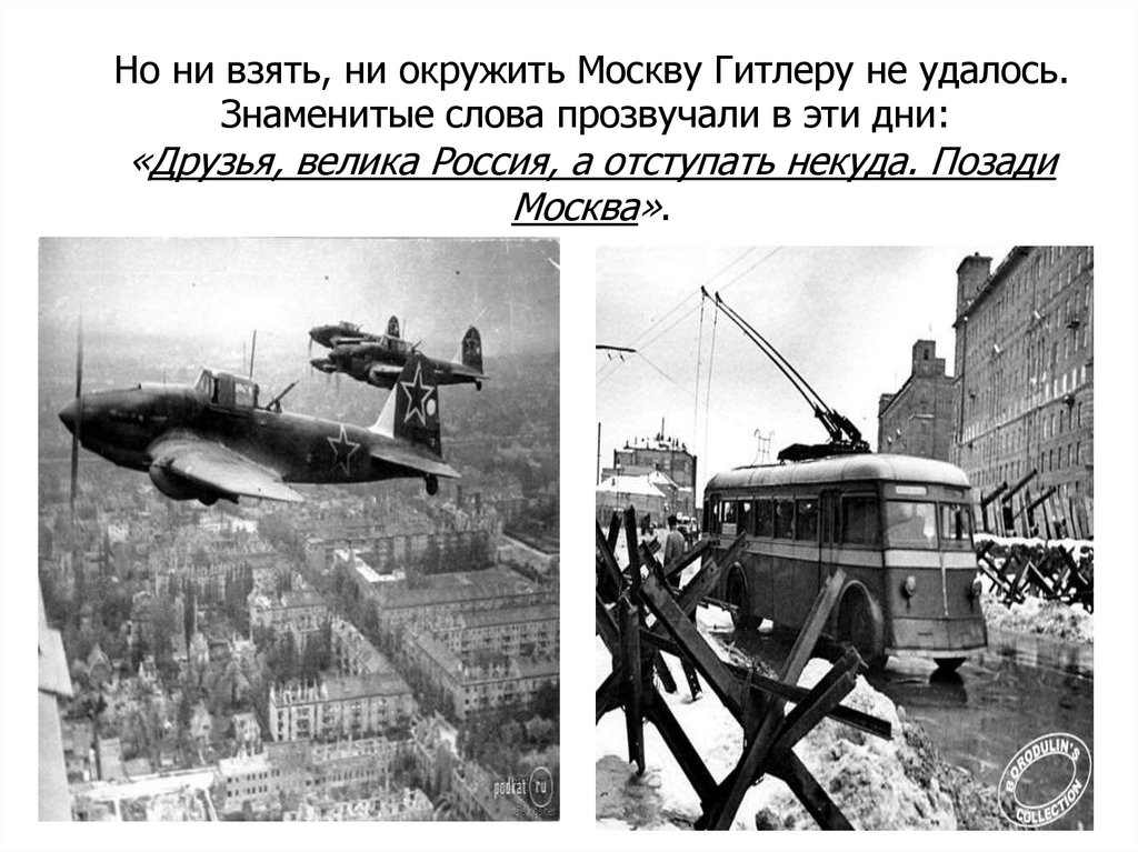 Но ни взять, ни окружить Москву Гитлеру не удалось.Знаменитые слова прозвучали в эти дни:
