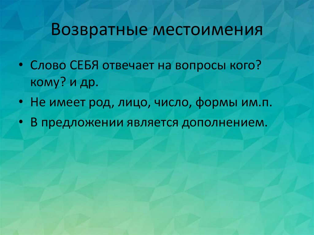 Возвратные местоимения• Слово СЕБЯ отвечает на вопросы кого?