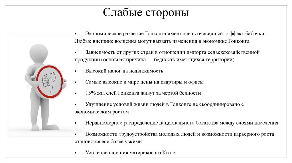 Слабые стороныЭкономическое развитие Гонконга имеет очень очевидный «эффект бабочки».