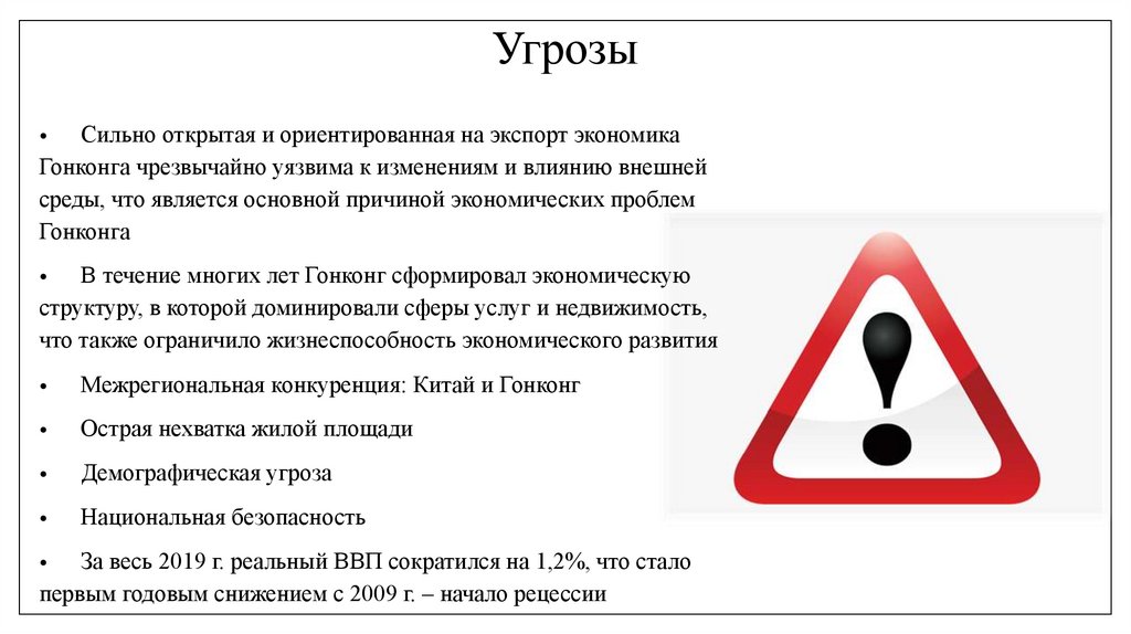 УгрозыСильно открытая и ориентированная на экспорт экономика