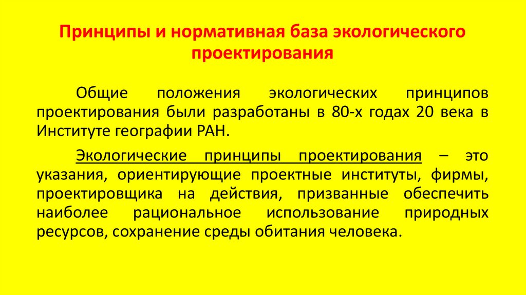 Принципы и нормативная база экологического проектирования