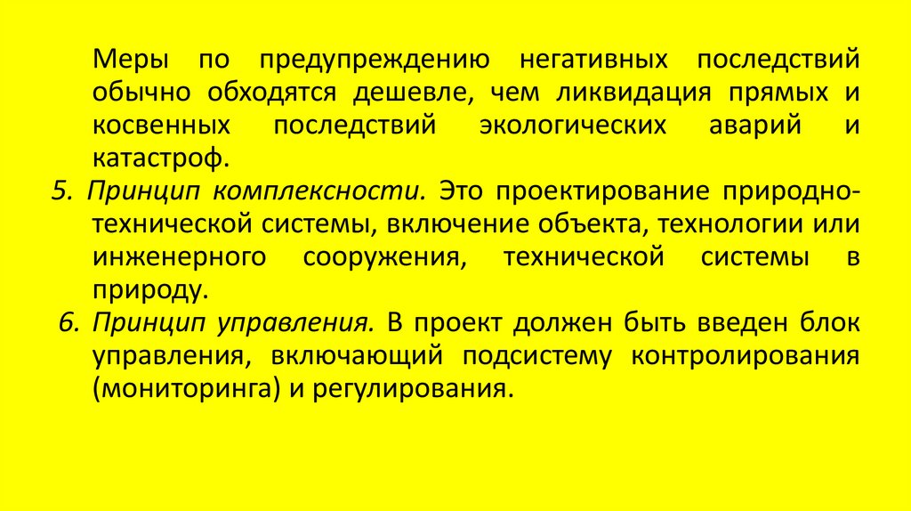 5. Принцип комплексности. Это проектирование природнотехнической системы, включение объекта, технологии или