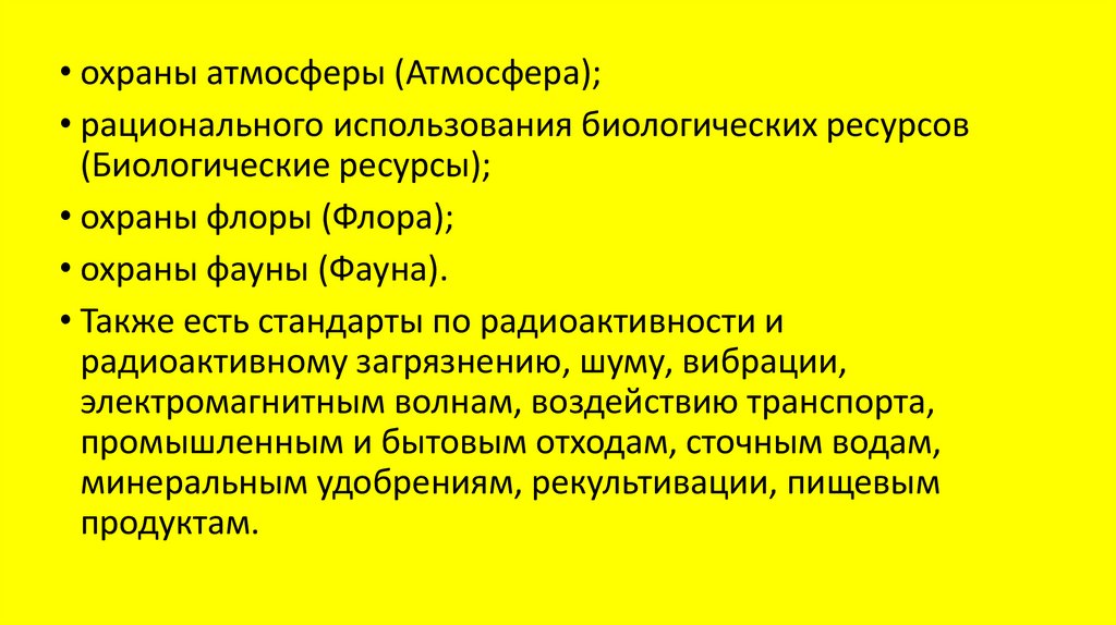 • охраны атмосферы (Атмосфера);• рационального использования биологических ресурсов