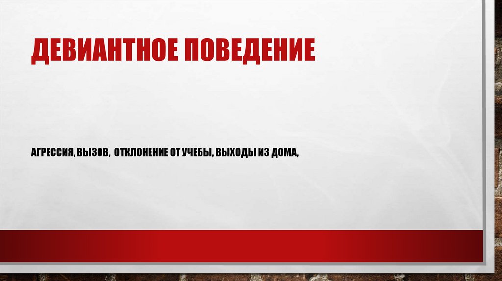 ДЕВИАНТНОЕ ПОВЕДЕНИЕАГРЕССИЯ, ВЫЗОВ, ОТКЛОНЕНИЕ ОТ УЧЕБЫ, ВЫХОДЫ ИЗ ДОМА,