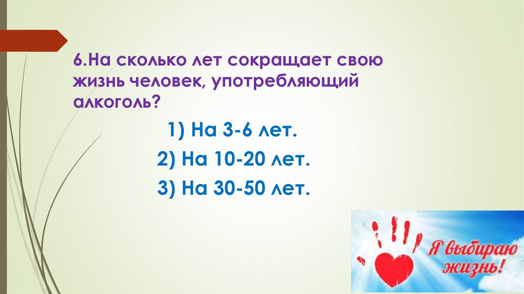 6.На сколько лет сокращает своюжизнь человек, употребляющий