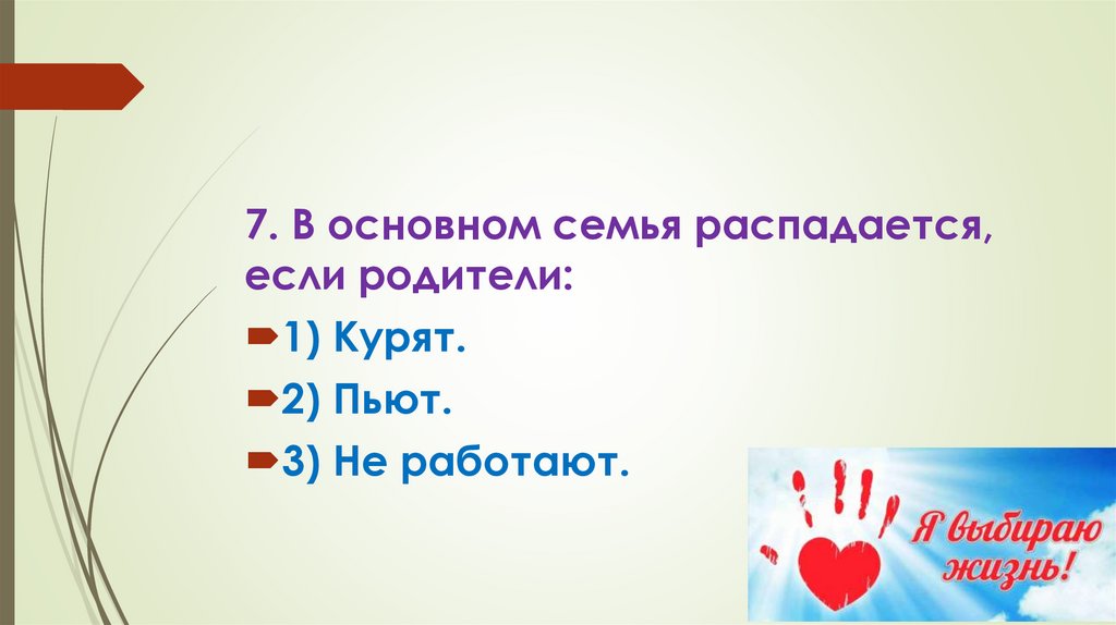 7. В основном семья распадается,если родители: