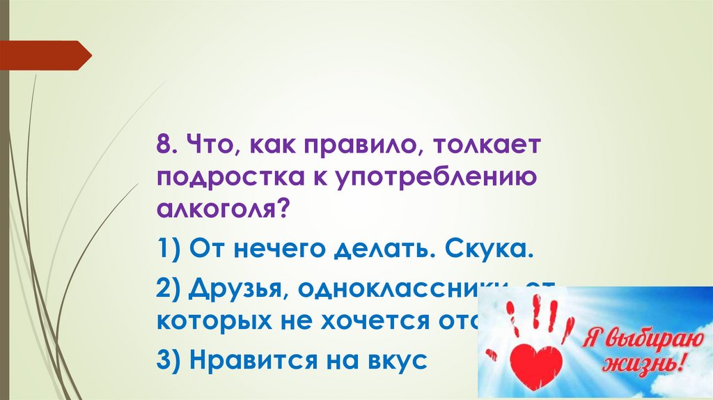 8. Что, как правило, толкаетподростка к употреблению
