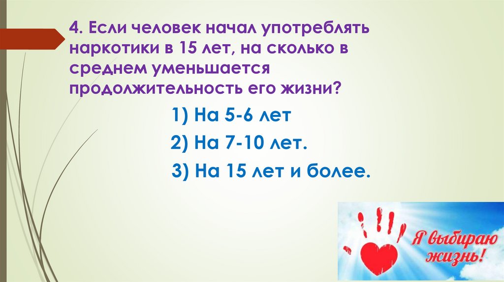 4. Если человек начал употреблятьнаркотики в 15 лет, на сколько в