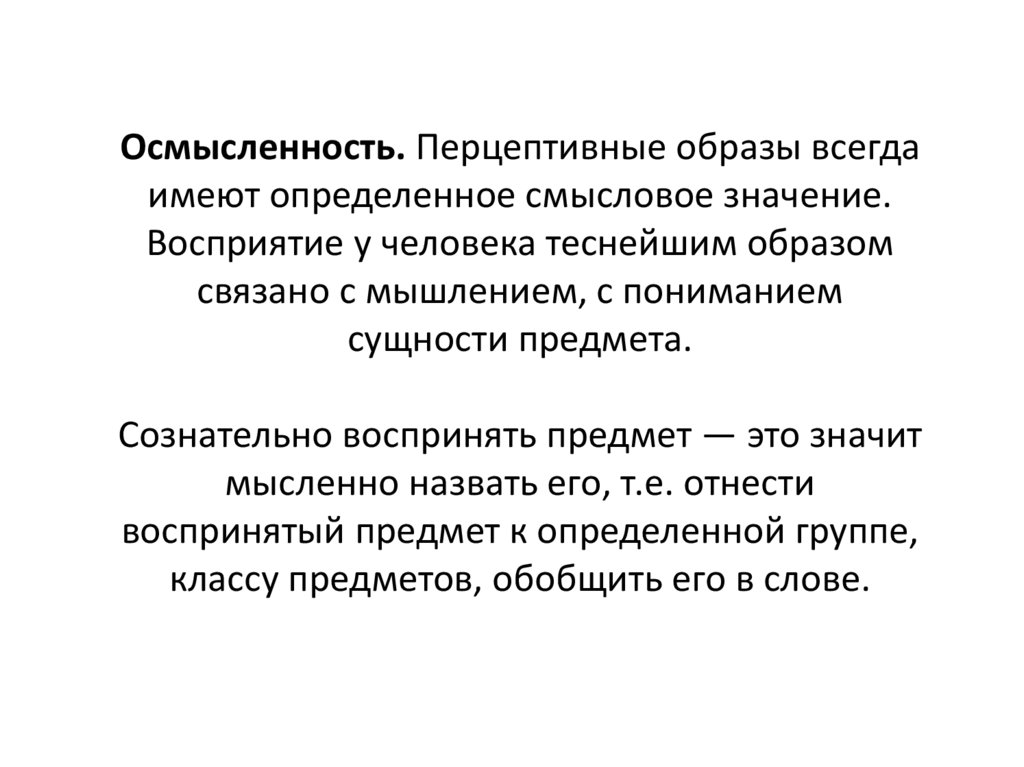 Осмысленность. Перцептивные образы всегдаимеют определенное смысловое значение.