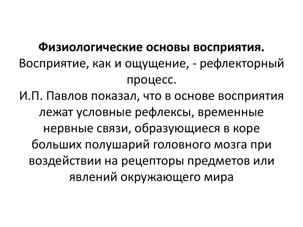 И.П. Павлов показал, что в основе восприятия