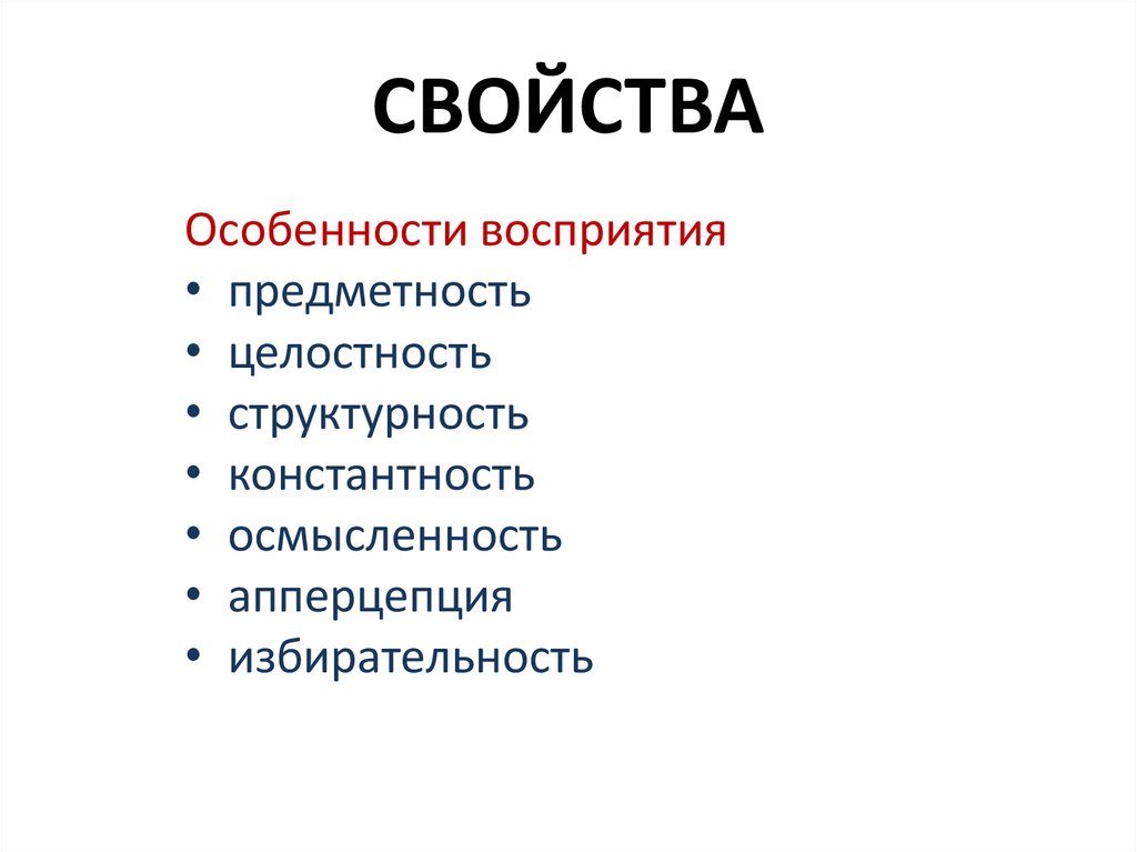 СВОЙСТВАОсобенности восприятия