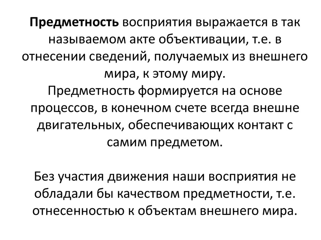 Предметность восприятия выражается в такназываемом акте объективации, т.е. в