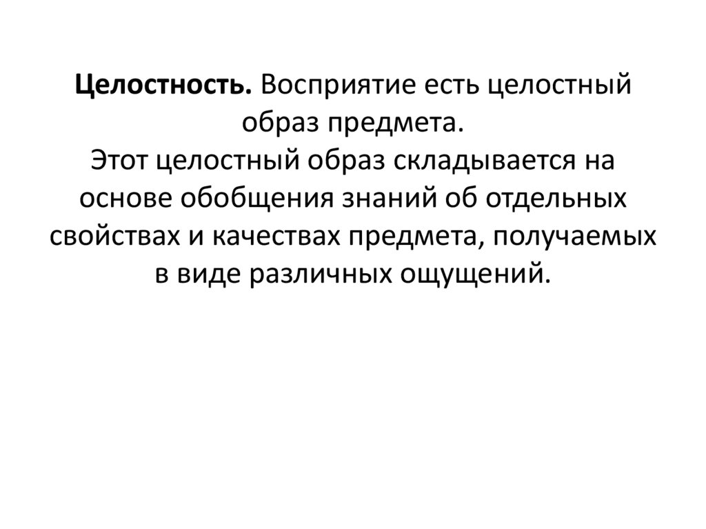 Целостность. Восприятие есть целостныйобраз предмета.