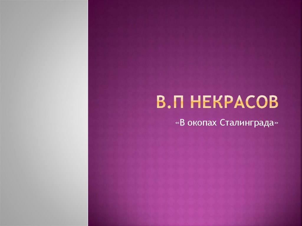 Виктор Некрасов Жизнь и творчество, анализ произведения 'В окопах Сталинграда'