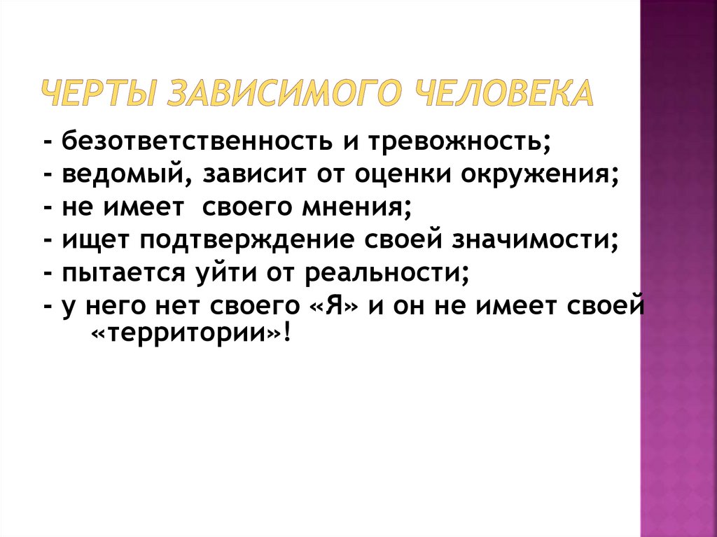 - безответственность и тревожность;- ведомый, зависит от оценки окружения;