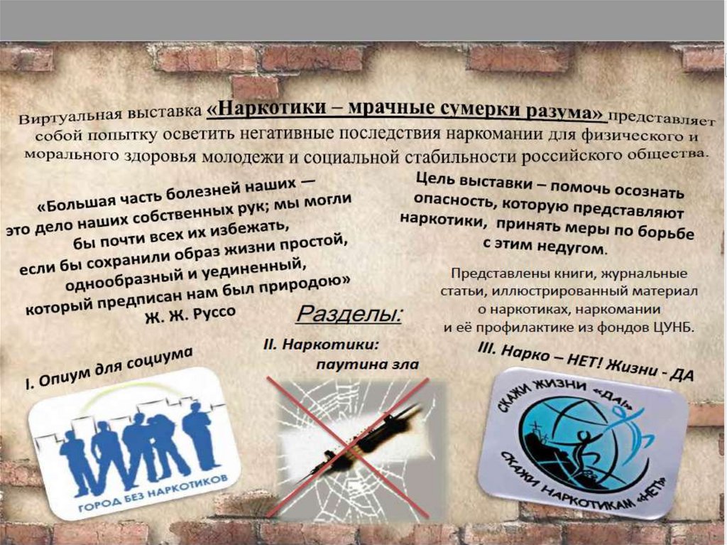 Виртуальная выставка: Наркотики — мрачные сумерки разума