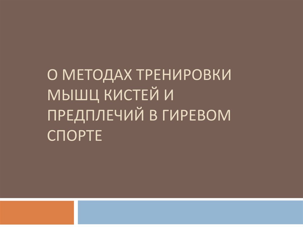О МЕТОДАХ ТРЕНИРОВКИМЫШЦ КИСТЕЙ И