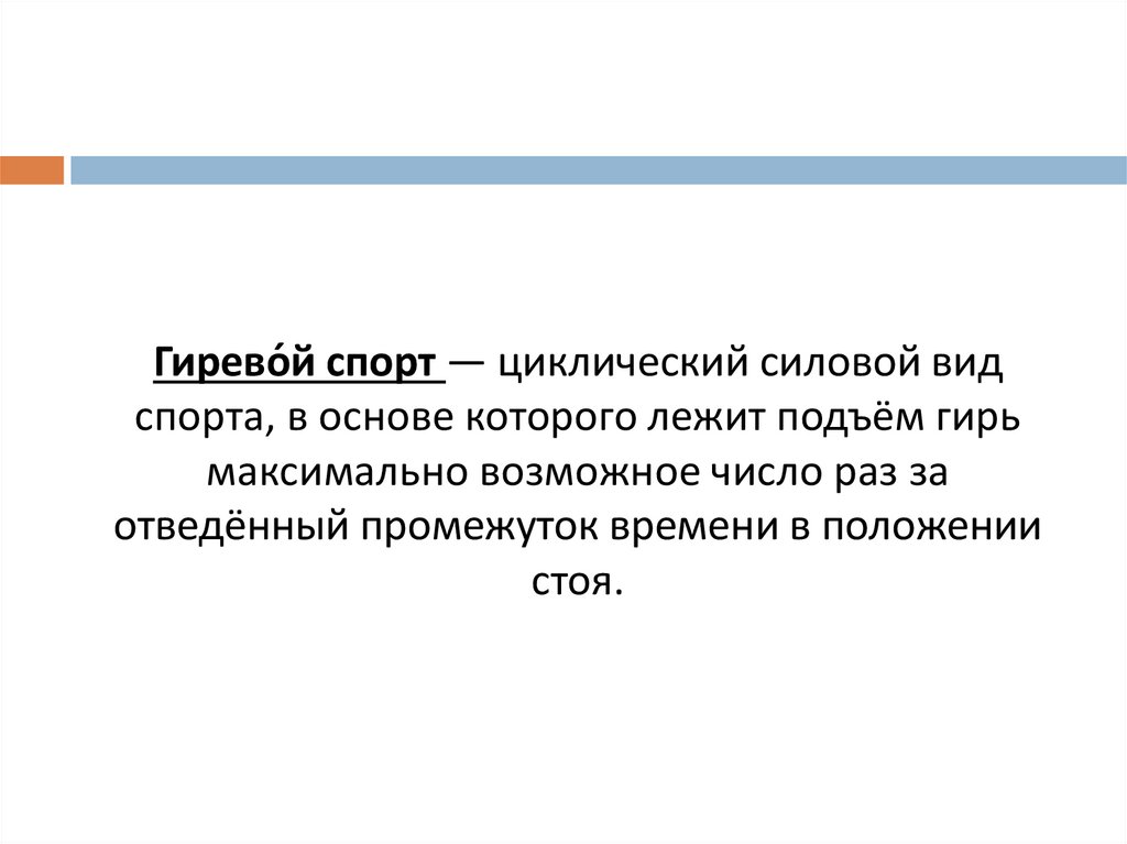 Гирево́й спорт — циклический силовой видспорта, в основе которого лежит подъём гирь