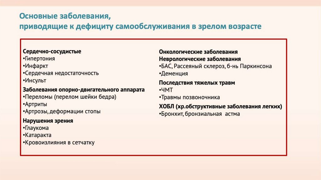 Основные заболевания, приводящие к дефициту самообслуживания