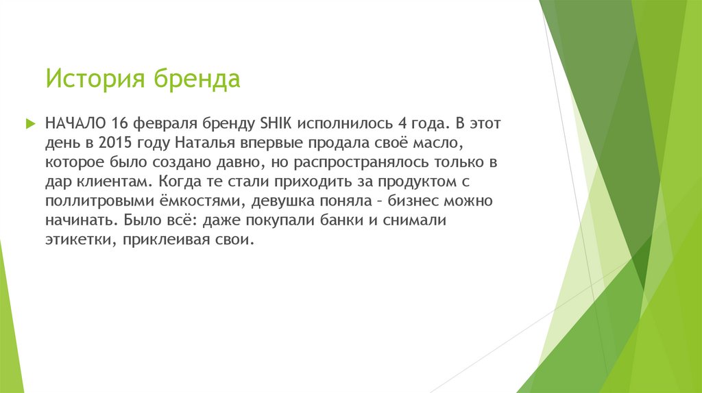 История брендаНАЧАЛО 16 февраля бренду SHIK исполнилось 4 года. В этот