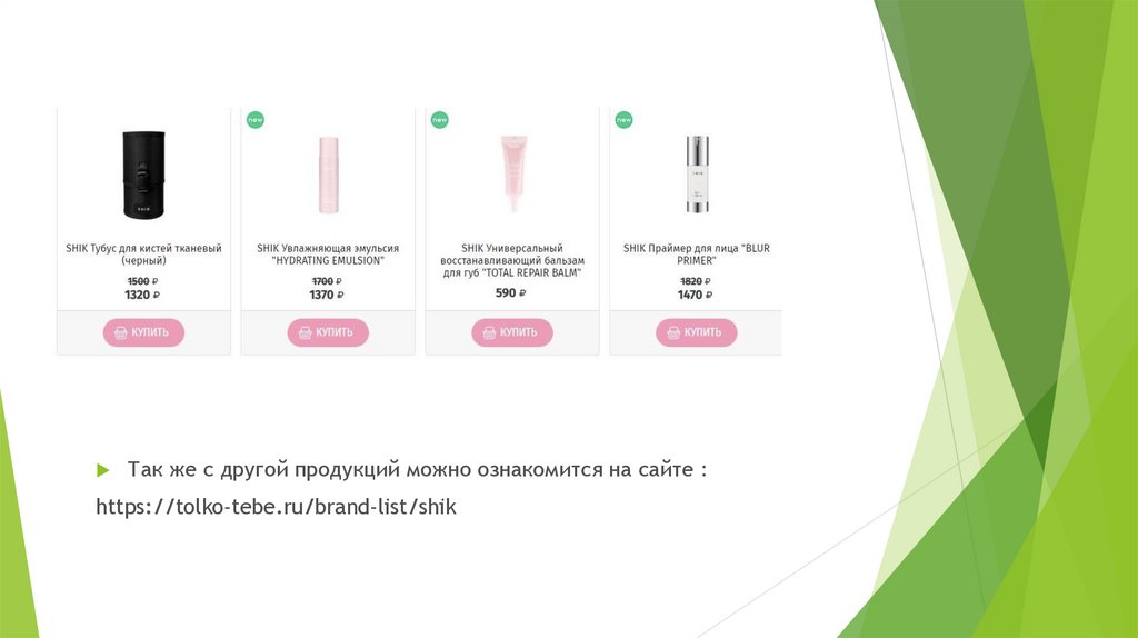 Так же с другой продукций можно ознакомится на сайте :https://tolko-tebe.ru/brand-list/shik
