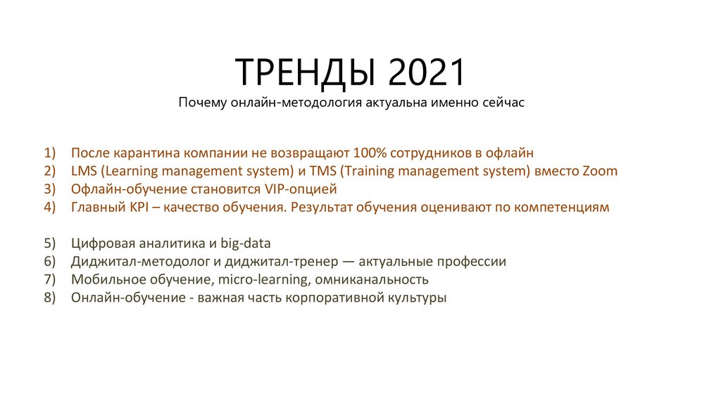 ТРЕНДЫ 2021Почему онлайн-методология актуальна именно сейчас