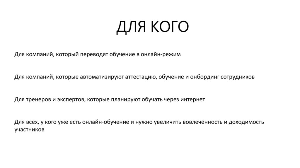 ДЛЯ КОГОДля компаний, который переводят обучение в онлайн-режим