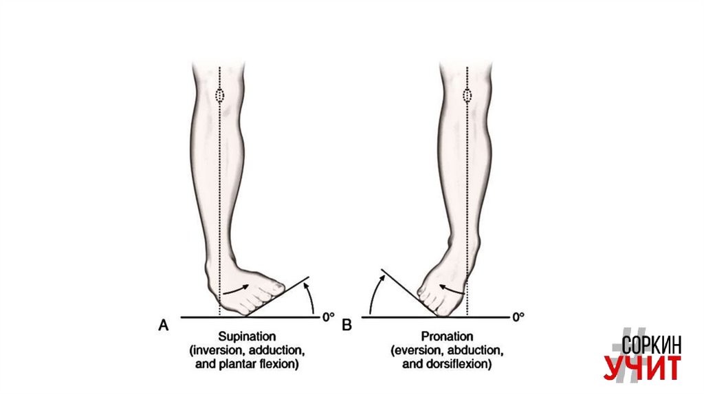 движения в суставах стопы в трех плоскостях и обилию