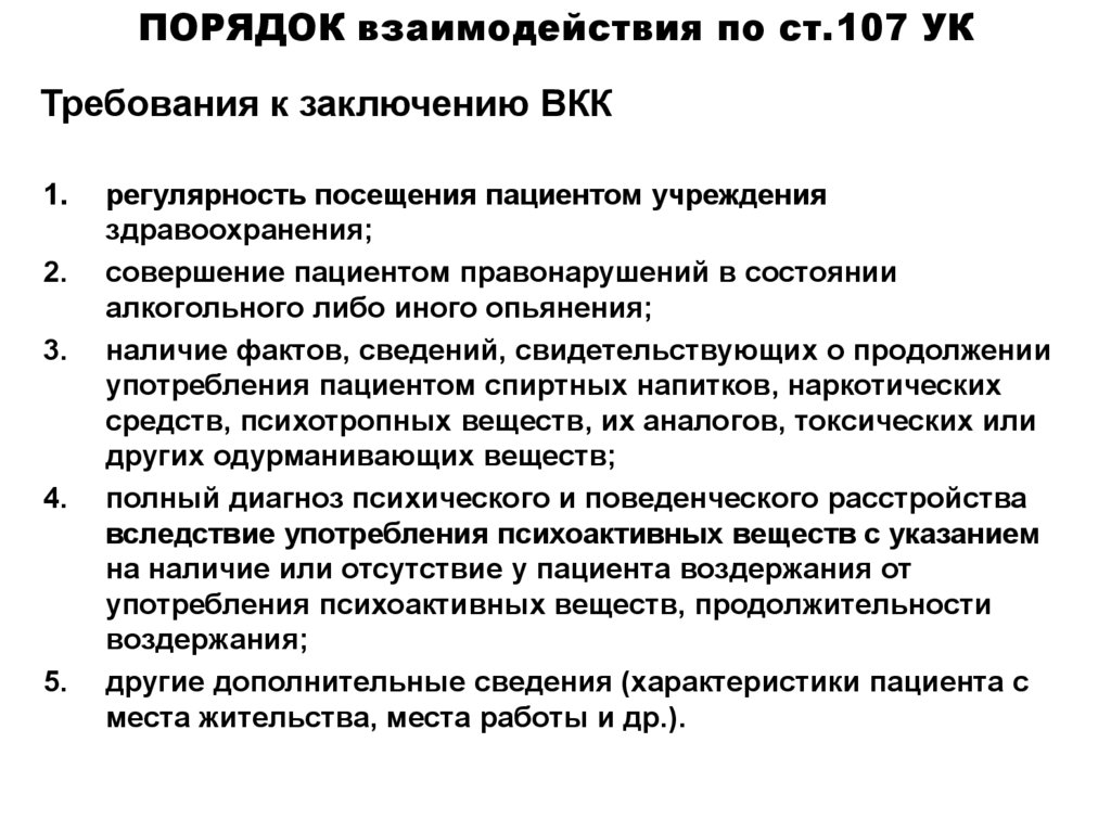 ПОРЯДОК взаимодействия по ст.107 УКТребования к заключению ВКК