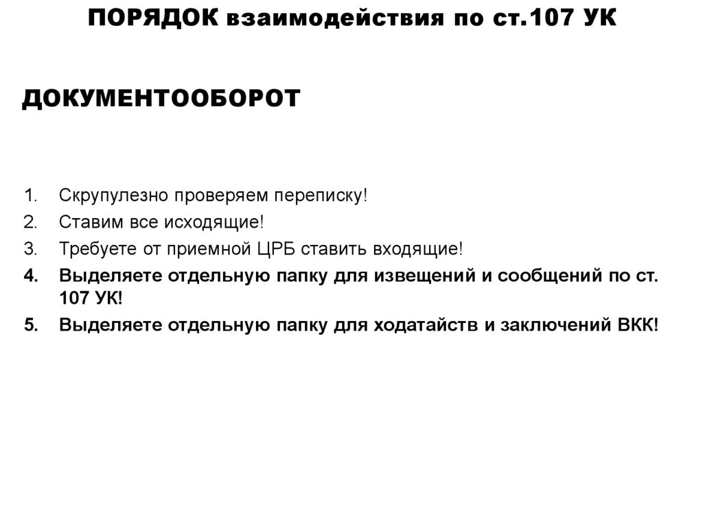 ПОРЯДОК взаимодействия по ст.107 УКДОКУМЕНТООБОРОТ