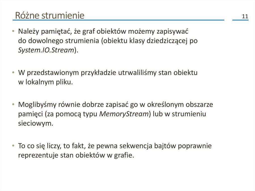 • Na przykład, podczas utrwalenia obiektu do strumienia,