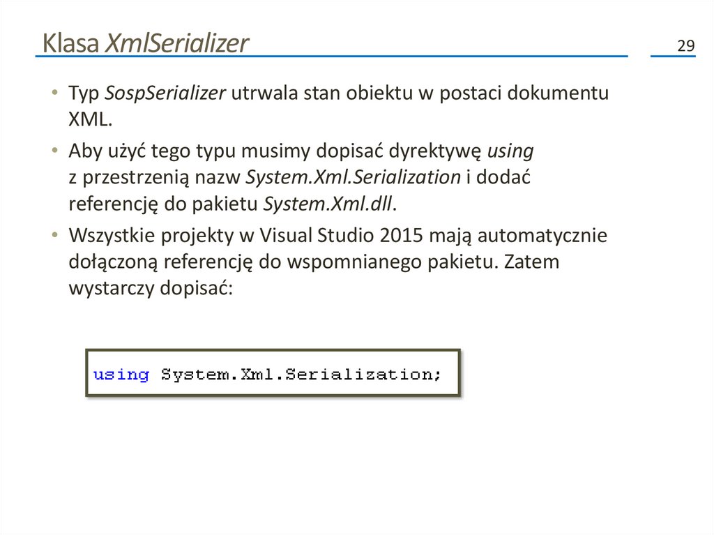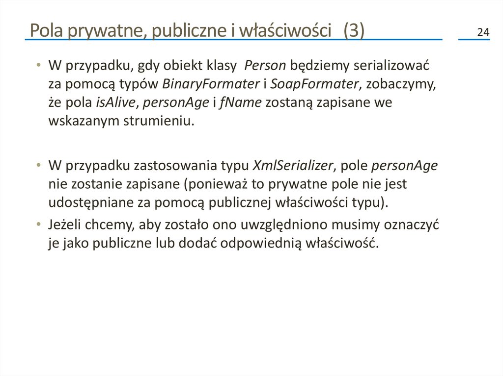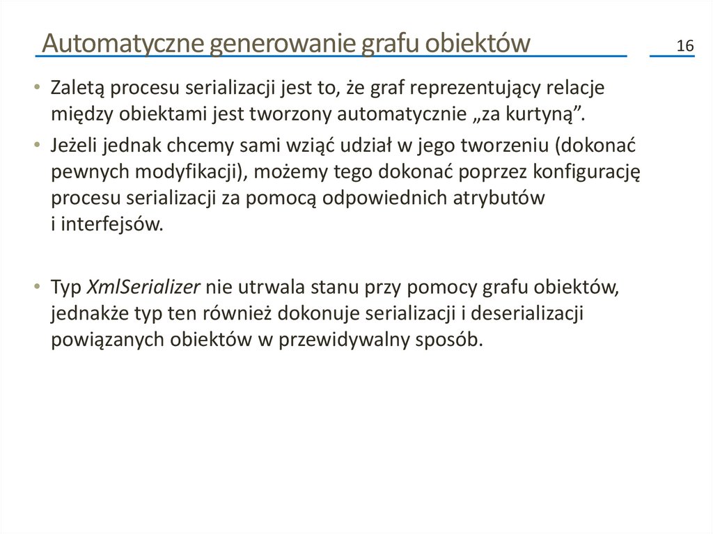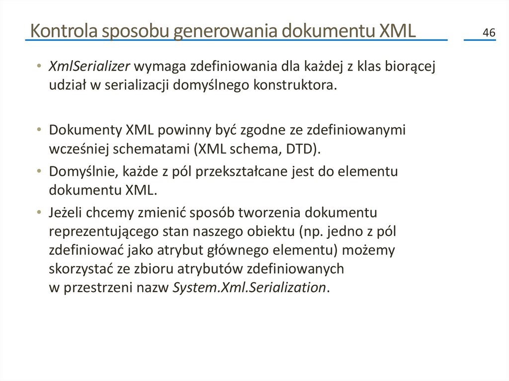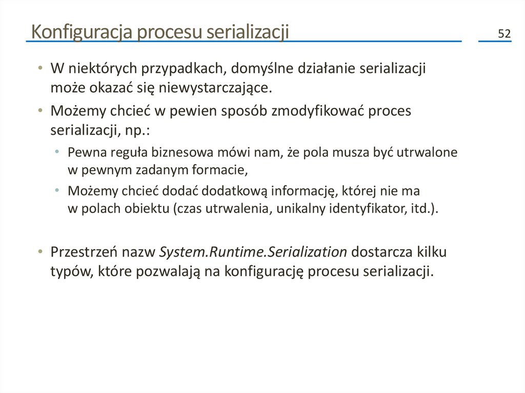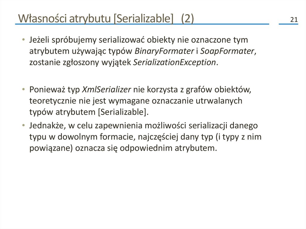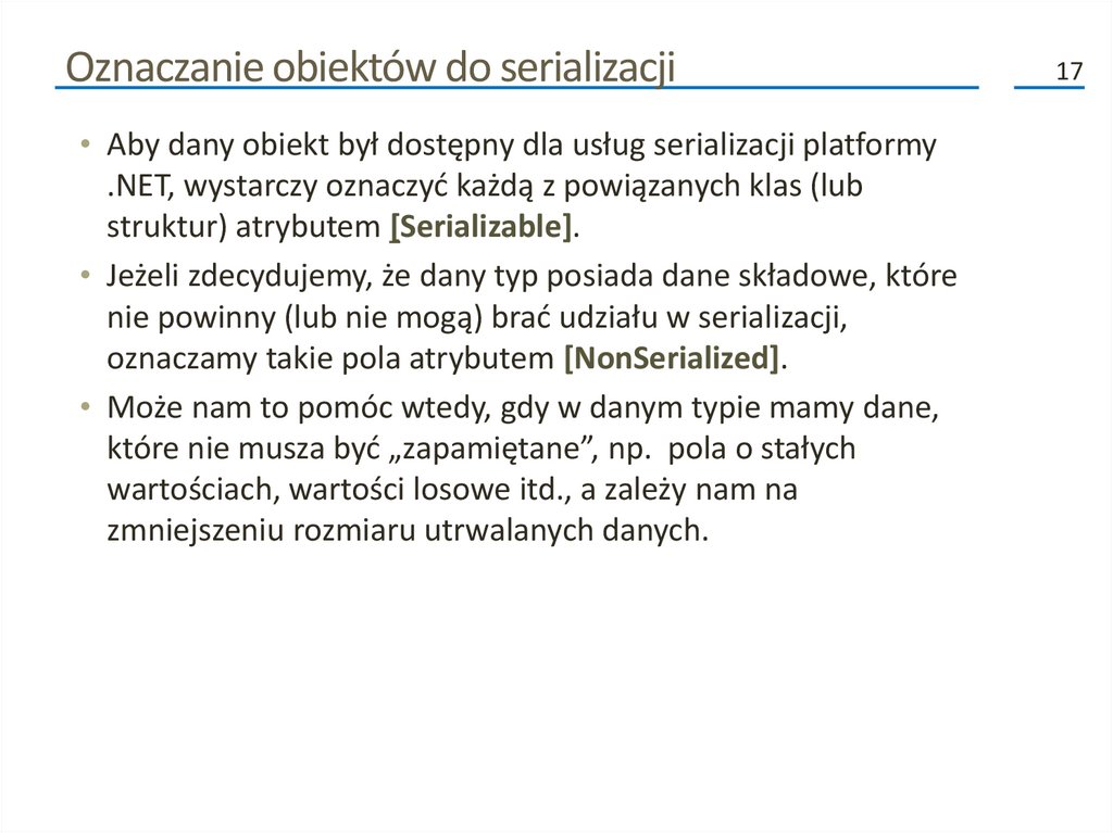związanych z serializacją. Możemy zastosować tylko te, które