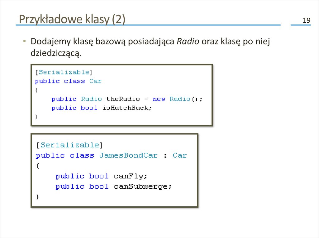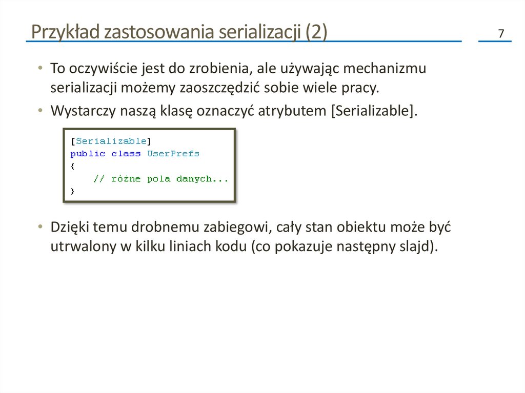 • Wystarczy naszą klasę oznaczyć atrybutem [Serializable].