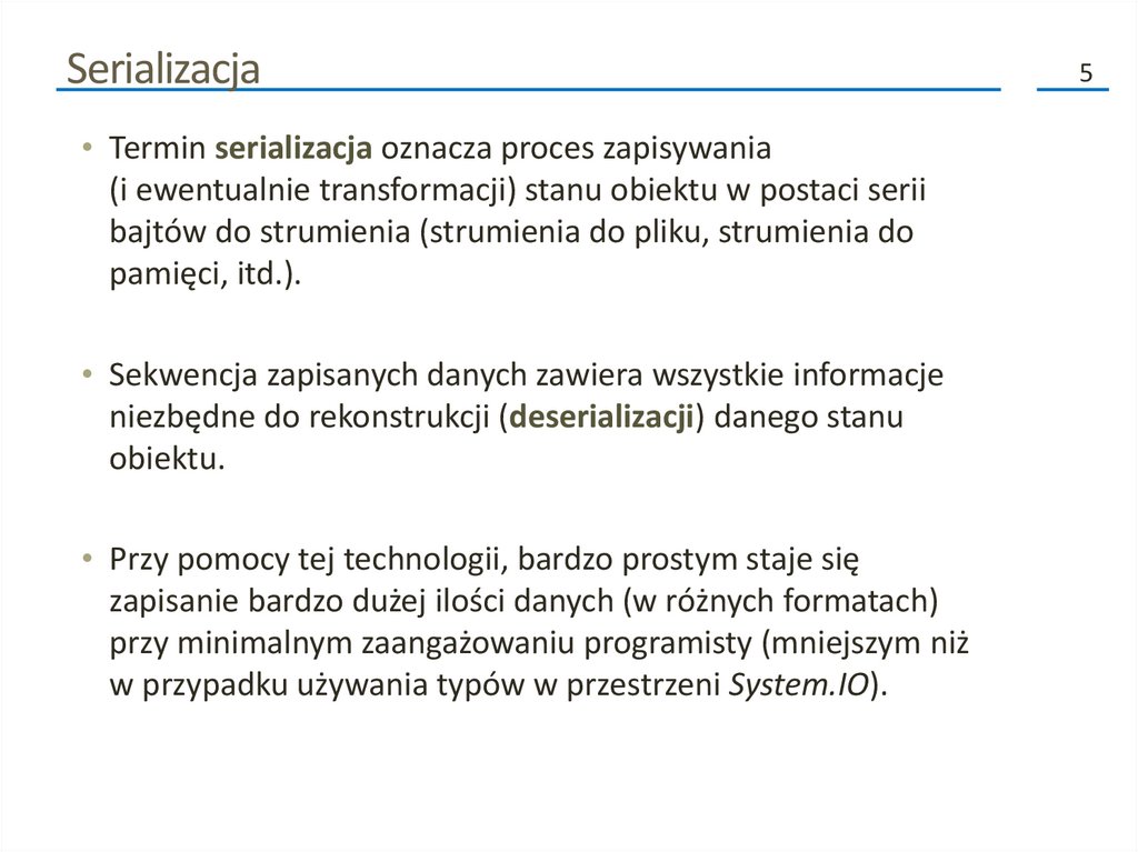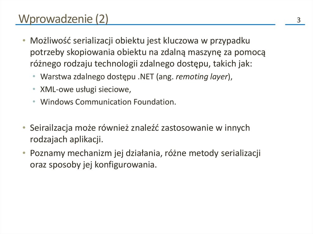 Wprowadzenie (2)• Możliwość serializacji obiektu jest kluczowa w przypadku