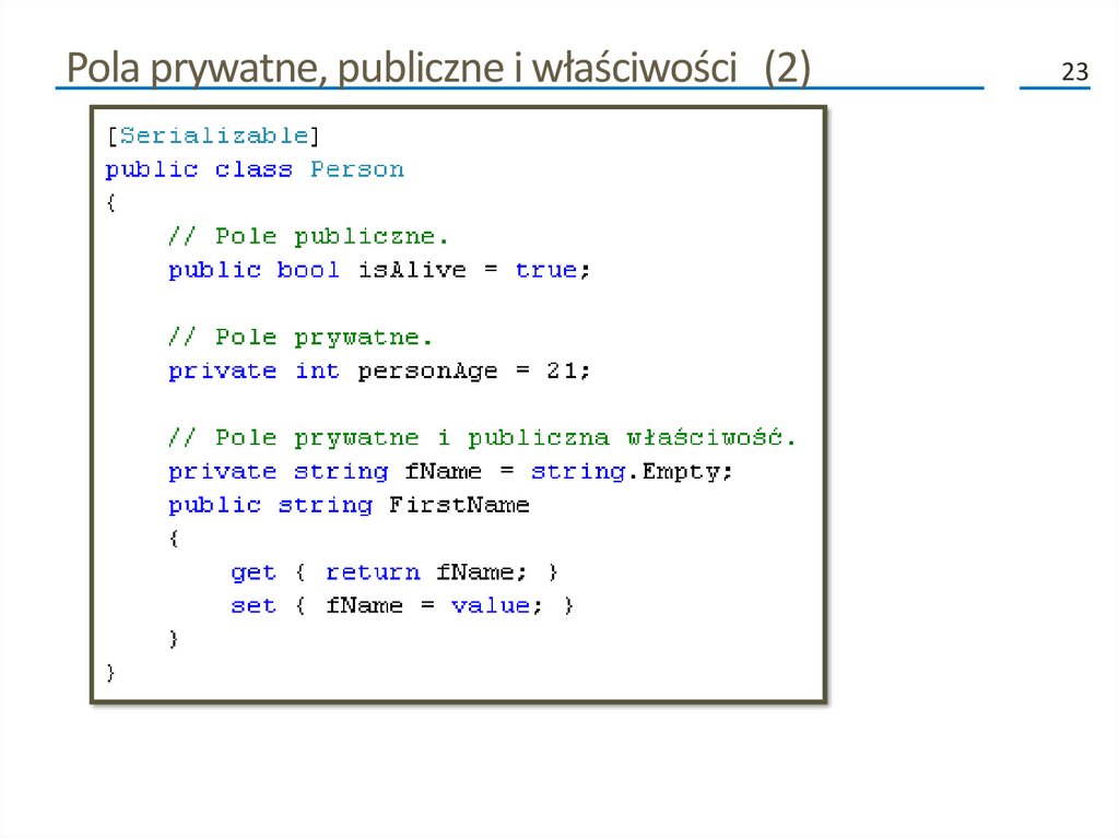 utrwalony w kilku liniach kodu (co pokazuje następny slajd).