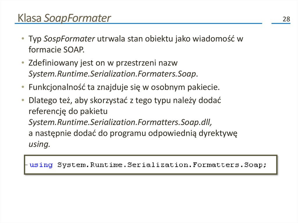 • Typ SoapFormater zachowuje się podobnie.