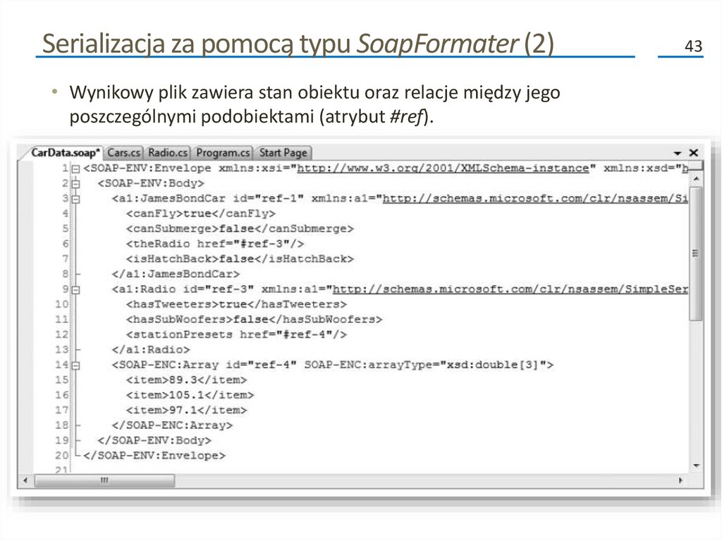• Możemy również utrwalić graf obiektów w formacie koperty SOAP