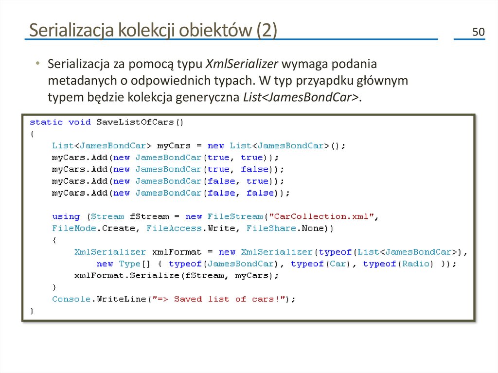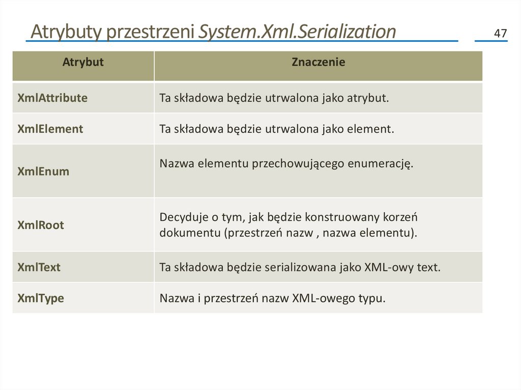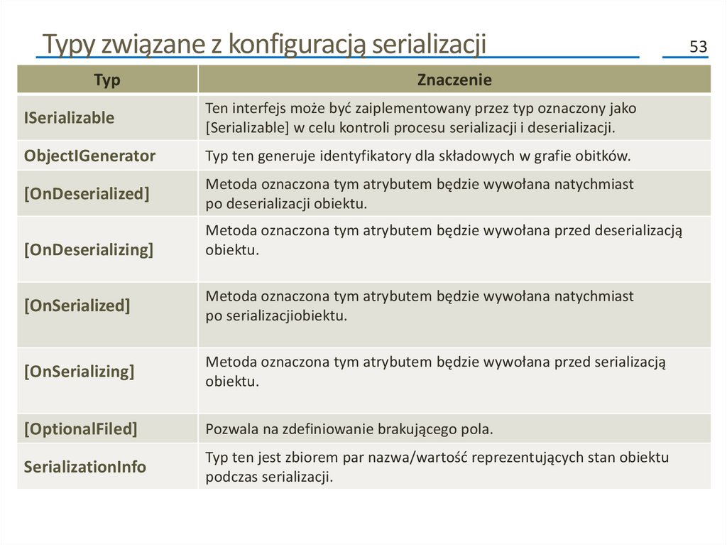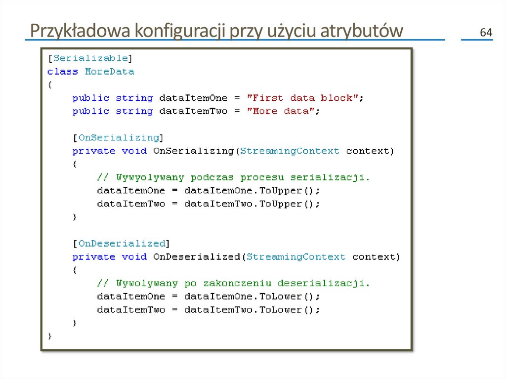 • Atrybuty te to [OnSerializing], [OnSerialized], [OnDeserializing]